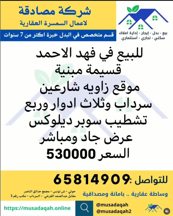 This style property is located in فهد الاحمد is currently and has been listed on السمسار العقاري. This property is listed at KWD 530000. It has bedrooms, bathrooms, and is . The property was built in year.